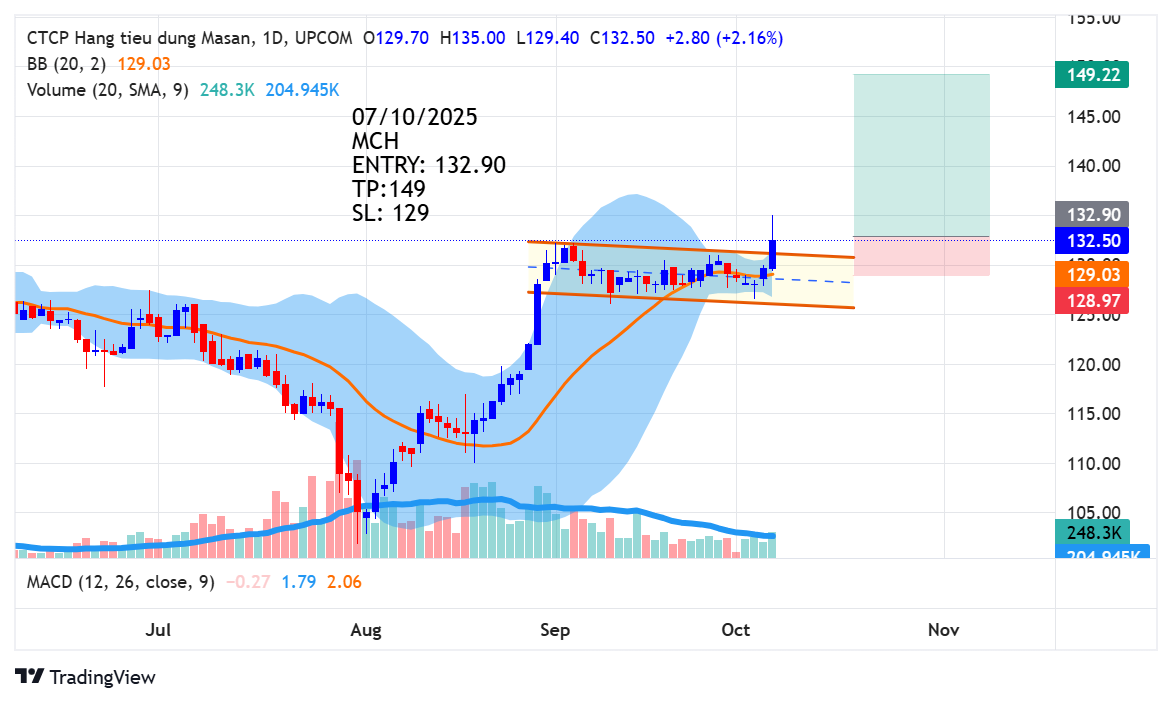 Khuyến nghị mua MCH ở giá 132.50, giá mục tiêu ở 155 (Upside 16%), giá cắt lỗ ở 129 (-3%).