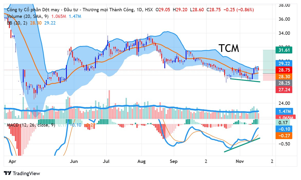 Hoặc chúng ta sẽ mua các cổ phiếu có điểm trading như TCM phân kỳ dương và điểm mua lúc kích hoạt phân kỳ dương này cũng ngay giá đáy kỹ thuật. Thì nếu trong trường hợp mà TT xấu đi thì những cổ phiếu chưa tăng như TCM mà còn đang ở nền giá như thế này thì cũng rất khó để giảm tiếp. Lúc đó TT sẽ bán những cổ đang xa nền giá và lấy tiền đó qua đỡ những cổ phiếu đang gần nền giá thì cái rủi ro của chúng ta sẽ giảm đi phần nào.