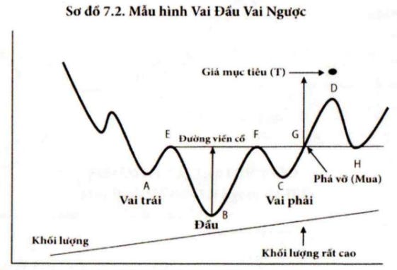 Mẫu hình này còn được gọi là Vai Đầu Vai ở Đáy. Tương tự mẫu hình Vai Đầu Vai ở Đỉnh, phiên bản Vai Đầu Vai Ngược cũng gồm ba đáy, trong đó “đầu” (đáy ở giữa) thấp hơn hai “vai”. Mẫu hình hoàn thiện khi giá đóng cửa vượt lên trên đường viền cổ (neckline). Cách đo mục tiêu giá cũng giống như ở Vai Đầu Vai ở Đỉnh.