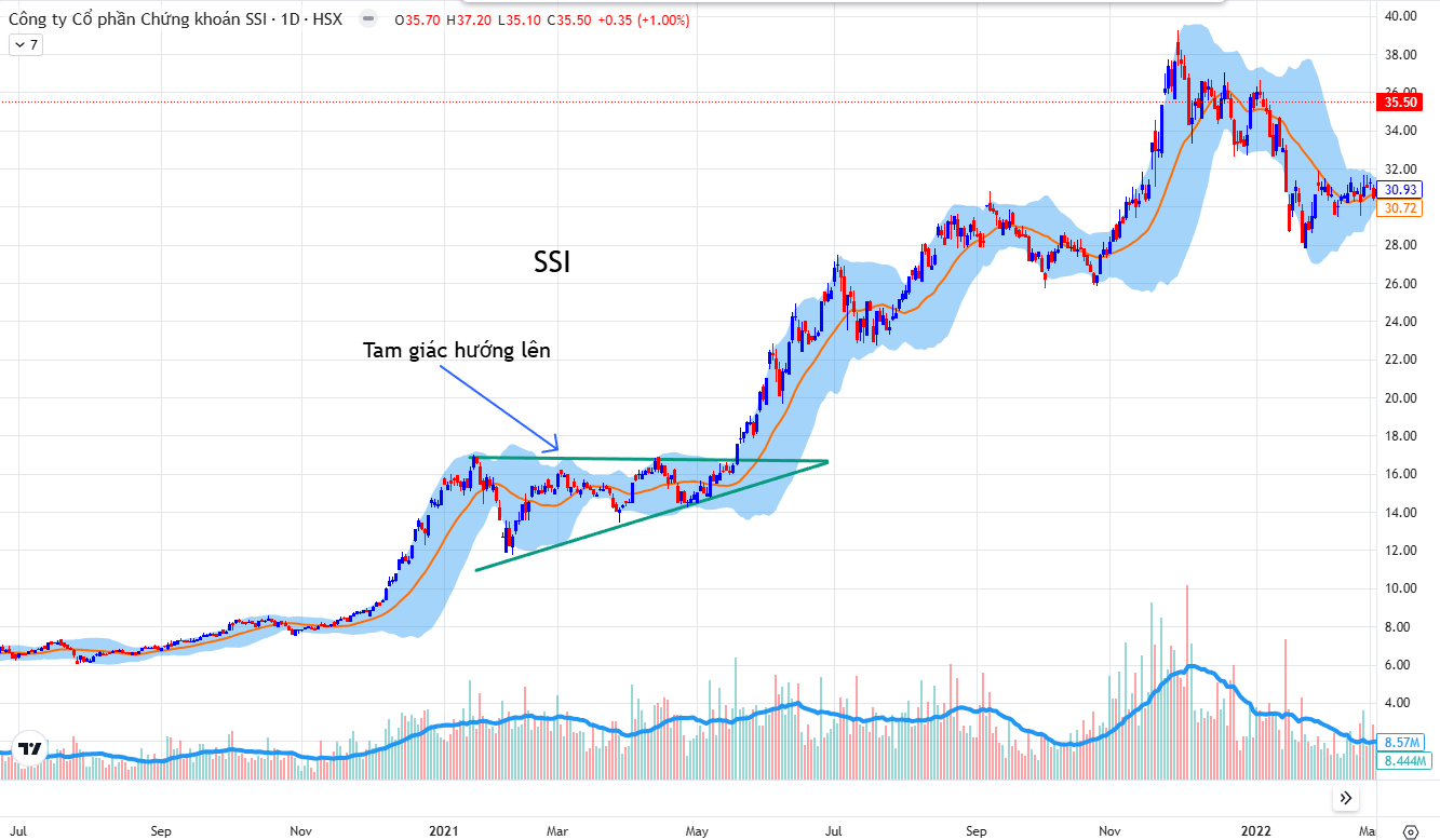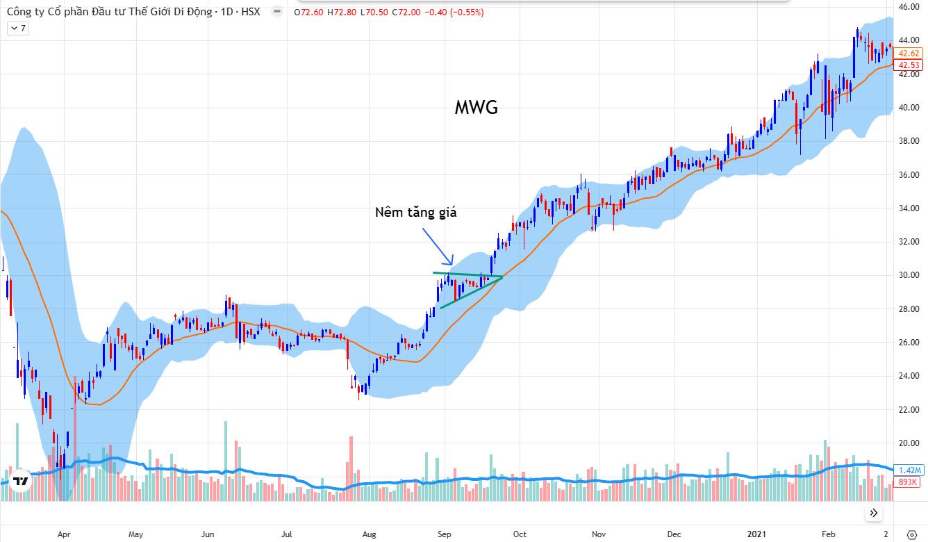 Khối lượng tăng mạnh tại điểm phá vỡ.