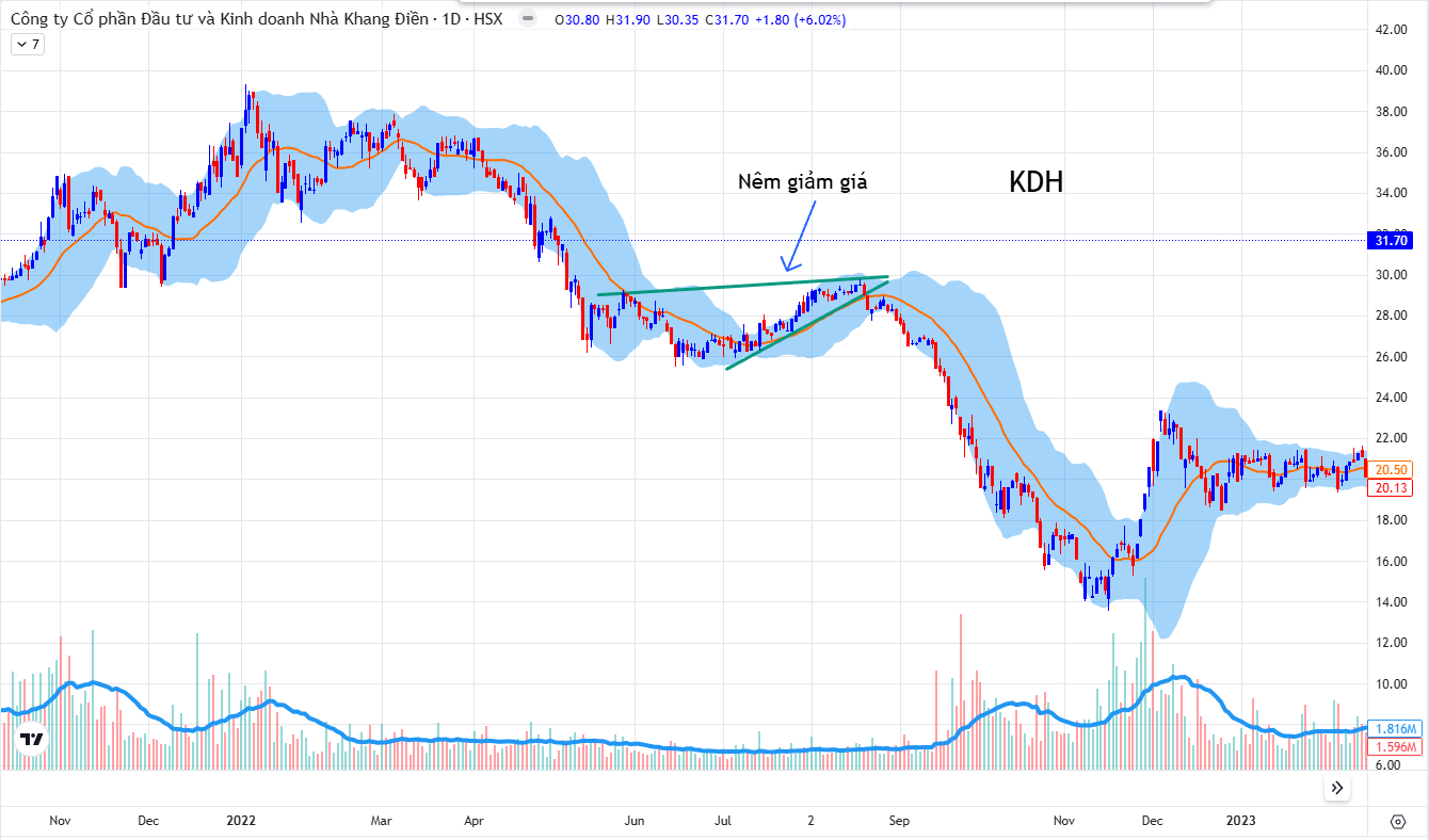 Điểm bán/short: Khi giá đóng cửa thủng đường hỗ trợ ngang với khối lượng lớn.