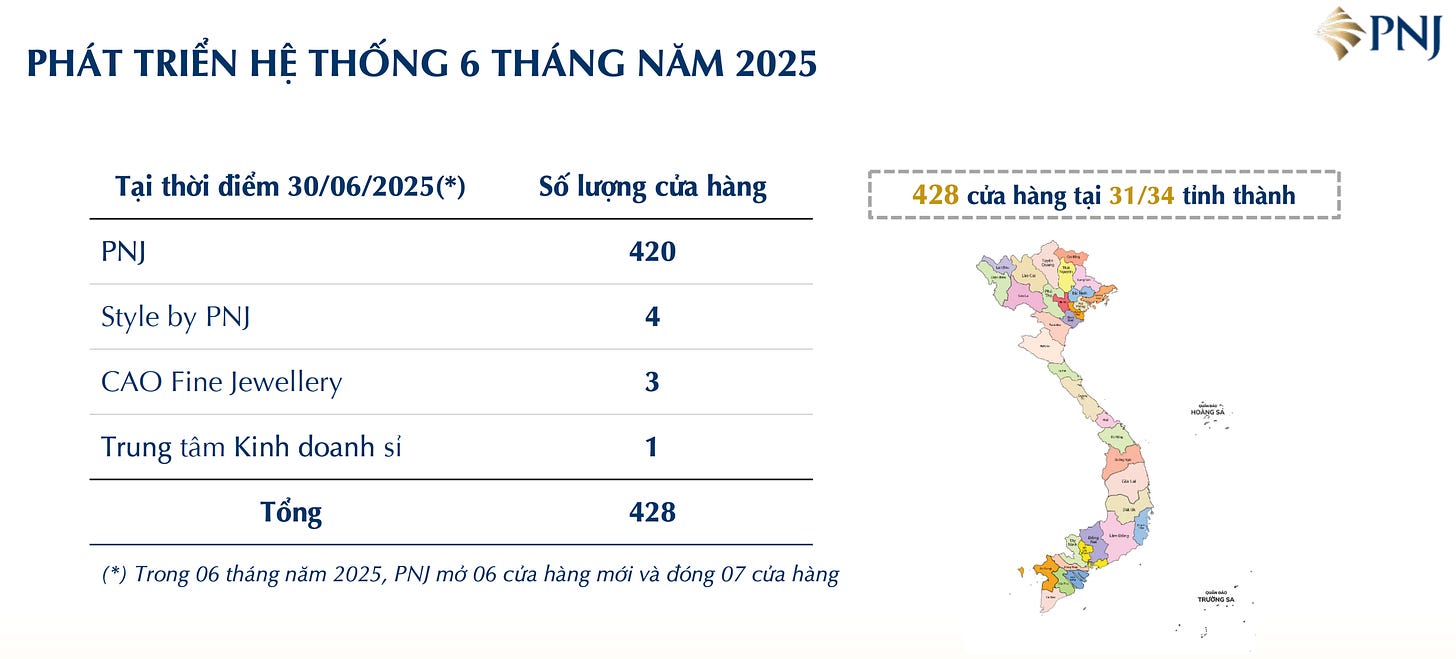 Điều đáng lưu ý, PNJ đang trong chu kỳ tin tức và kết quả kinh doanh không ủng hộ. Doanh nghiệp tăng trưởng mạnh trong 2022, 2023 và nữa đầu 2024, trước khi thụt lùi ở nữa cuối 2024 và nữa đầu 2025. Nguyên nhân chủ yếu đến từ việc giá vàng tăng sốc dẫn đến giảm nhu cầu vàng trang sức, và thiếu hụt nguyên vật liệu làm giảm biên lợi nhuận.
