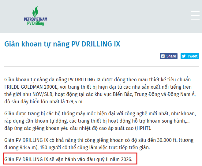 Cho đến cuối tháng 8 vừa rồi, giàn PVD VIII đã được đưa vào hoạt động. Tiếp đến, giàn PVD IX dự kiến đưa vào hoạt động vào đầu quý II năm 2026.