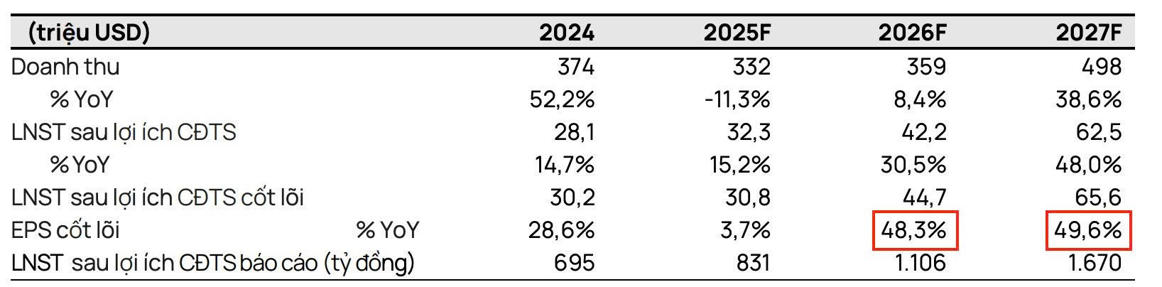 Ngoài ra, tham khảo từ dự phóng Vietcap, EPS cốt lõi sẽ tăng trung bình 48 - 49% trong 2 năm tới.