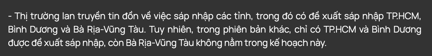 Gần đây có nhiều tin đồn TP HCM được mở rộng bằng cách sáp nhập các tỉnh như Bình Dương, BR-VT. Khiến giá các cổ phiếu bất động sản có dự án ở Bình Dương đều tăng tiêu biểu có thể kể đến: IJC, HDC...
