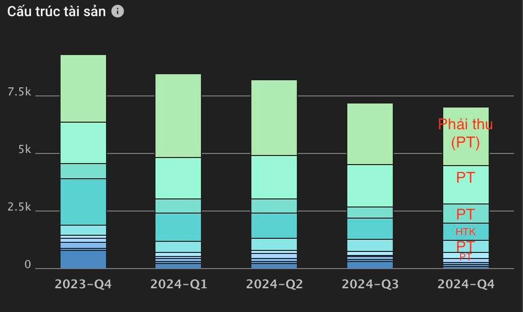 Bên cạnh hàng tồn kho thì còn có khoản phải thu: các dấu hiệu đáng lưu ý là phải thu tăng liên tục hoặc có các khoản phải thu từ các khoản cho vay lớn. Thường là cho các doanh nghiệp có liên quan vay. Hôm nay được bạn gửi cho coi 1 thông tin mở bán dự án của 1 doanh nghiệp ở Bình Dương, xem có đầu tư được không. Mở BCTC coi cái đi ngủ luôn. Tài sản 7k tỷ, khoản phải thu 6k tỷ rồi. Trong hình toàn là phải thu.