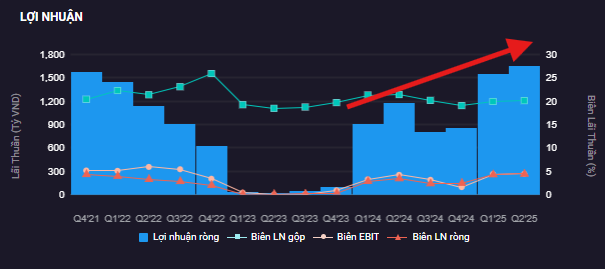 Ngắn hạn, tham khảo dự phóng từ các bên,lợi nhuận quý 3/2025 ước đạt khoảng 1600 tỷ đồng, tăng gần 100% so với cùng kỳ, có thể mang lại tâm lý tích cực cho giá cổ phiếu.
