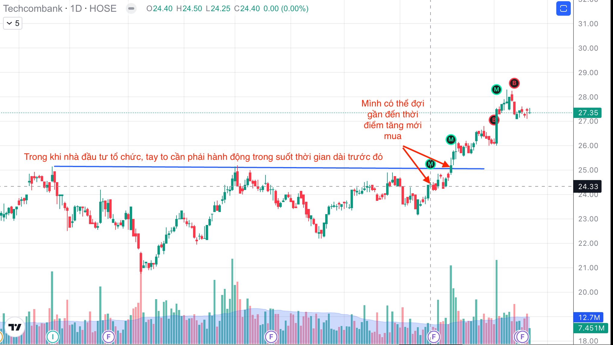 - NĐT cá nhân có thể đoán thời điểm cổ phiếu bắt đầu sóng tăng để tham gia. Điều mà NĐT tổ chức ko làm được, do họ phải mua trong một thời gian dài mới đủ số lượng yêu cầu.