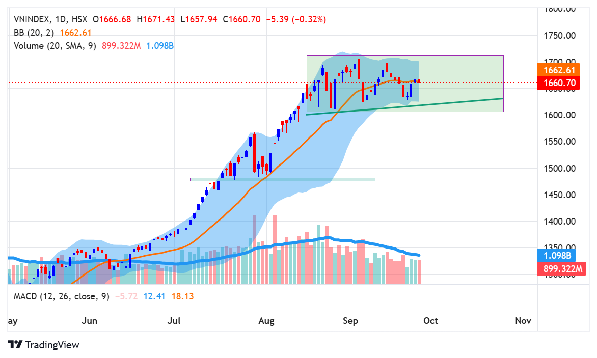 VNIndex tiếp tục nối dài chuỗi ngày giao dịch hẹp và thanh khoản thấp. Và tình trạng này có thể kéo dài thêm hết tháng 9.